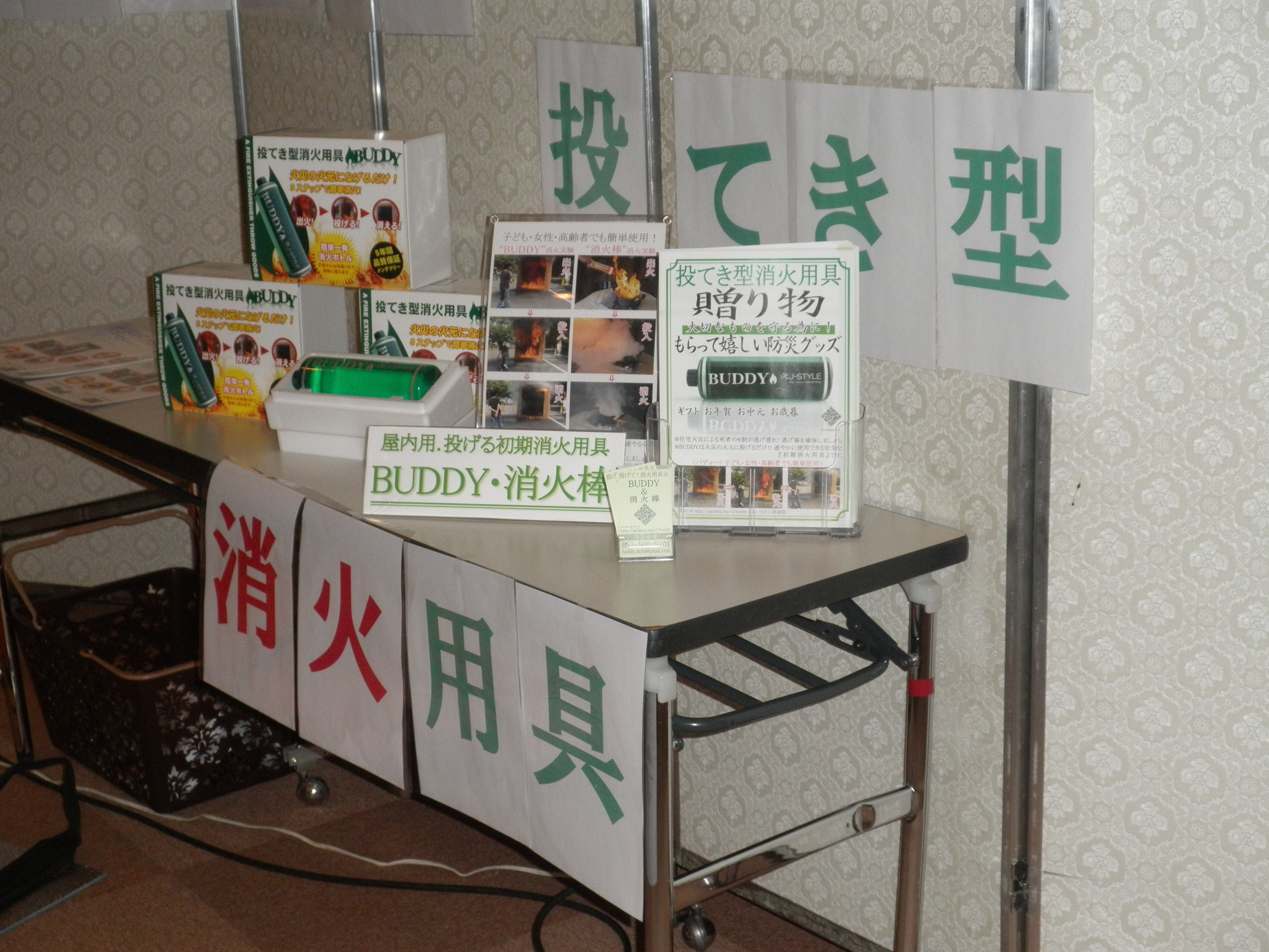 こちらは投てき型消火器「BUDDY」の展示です。