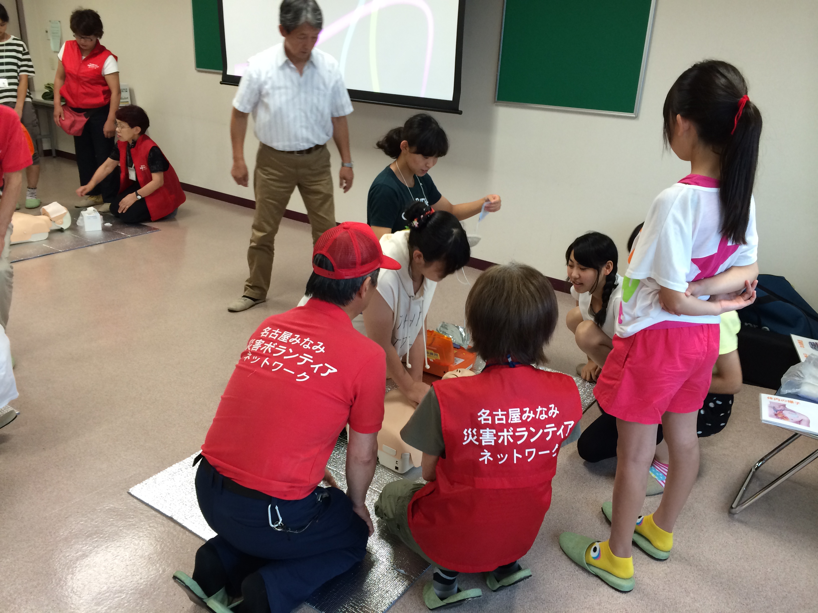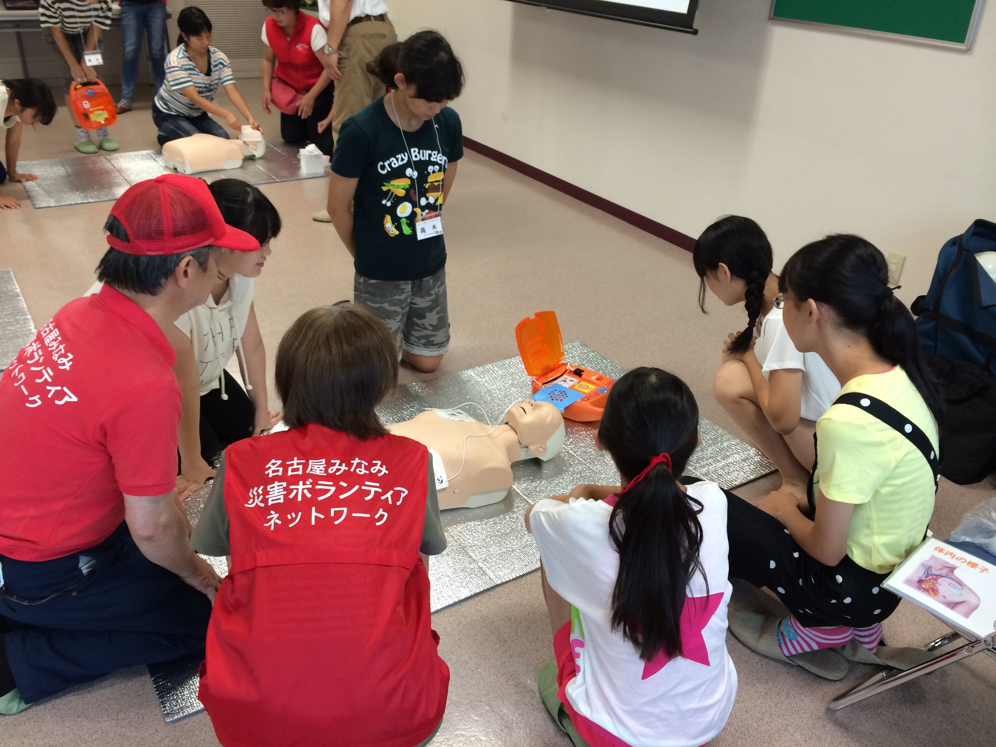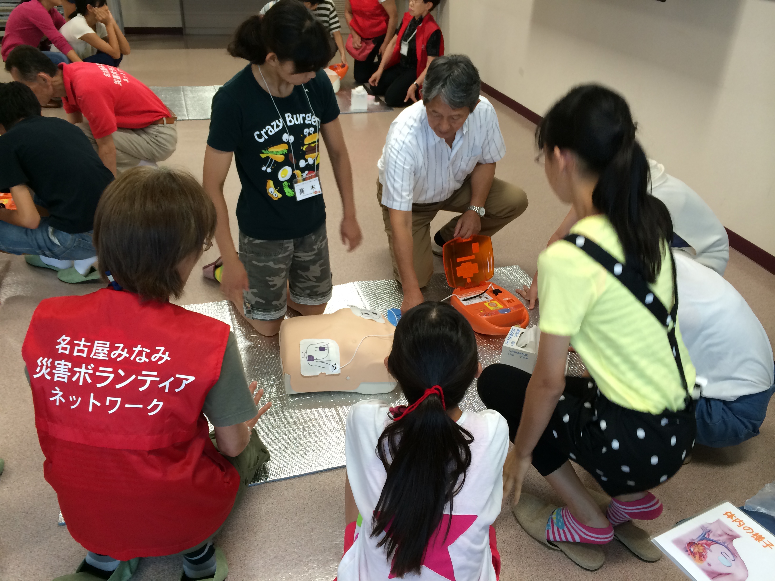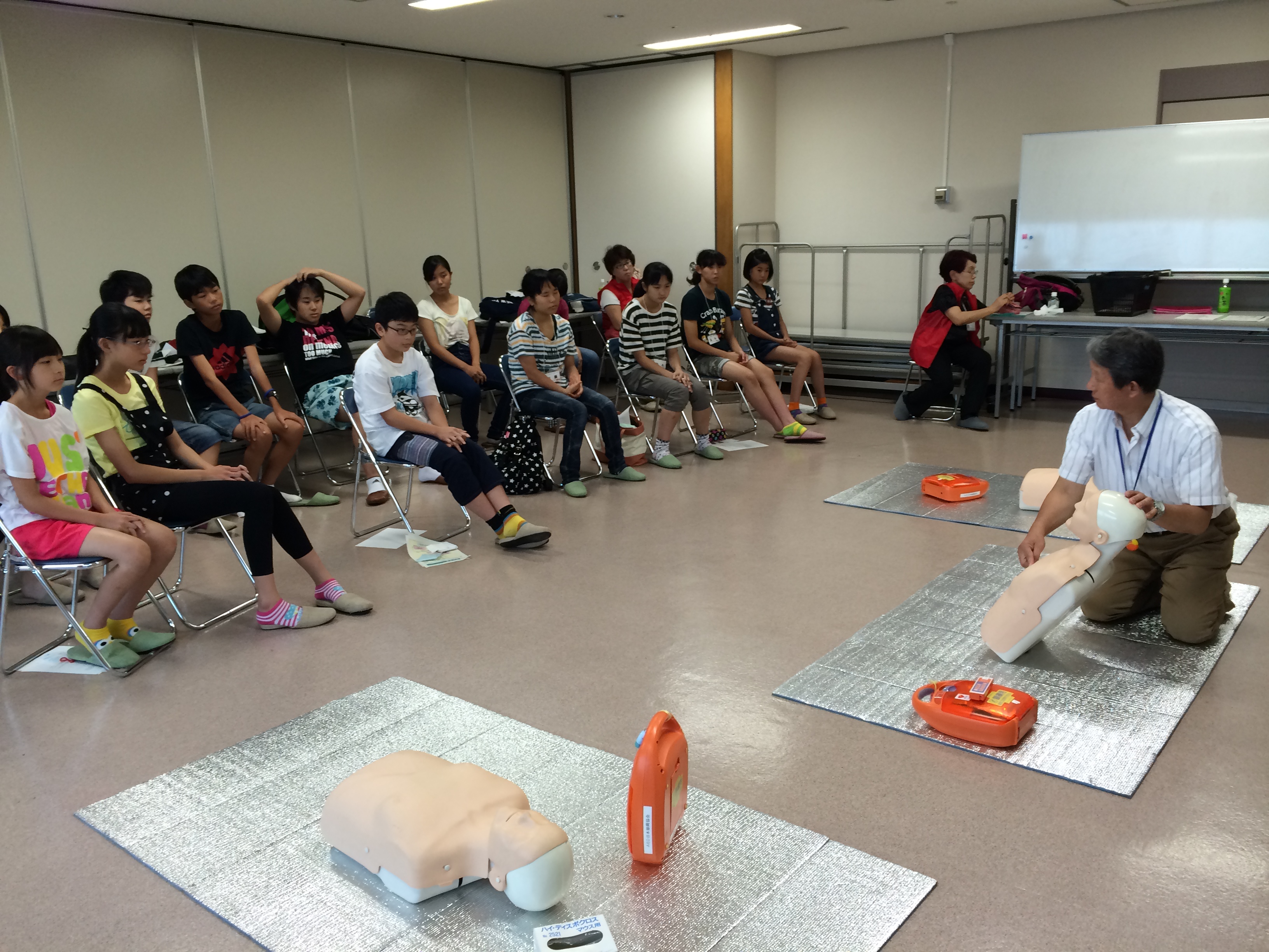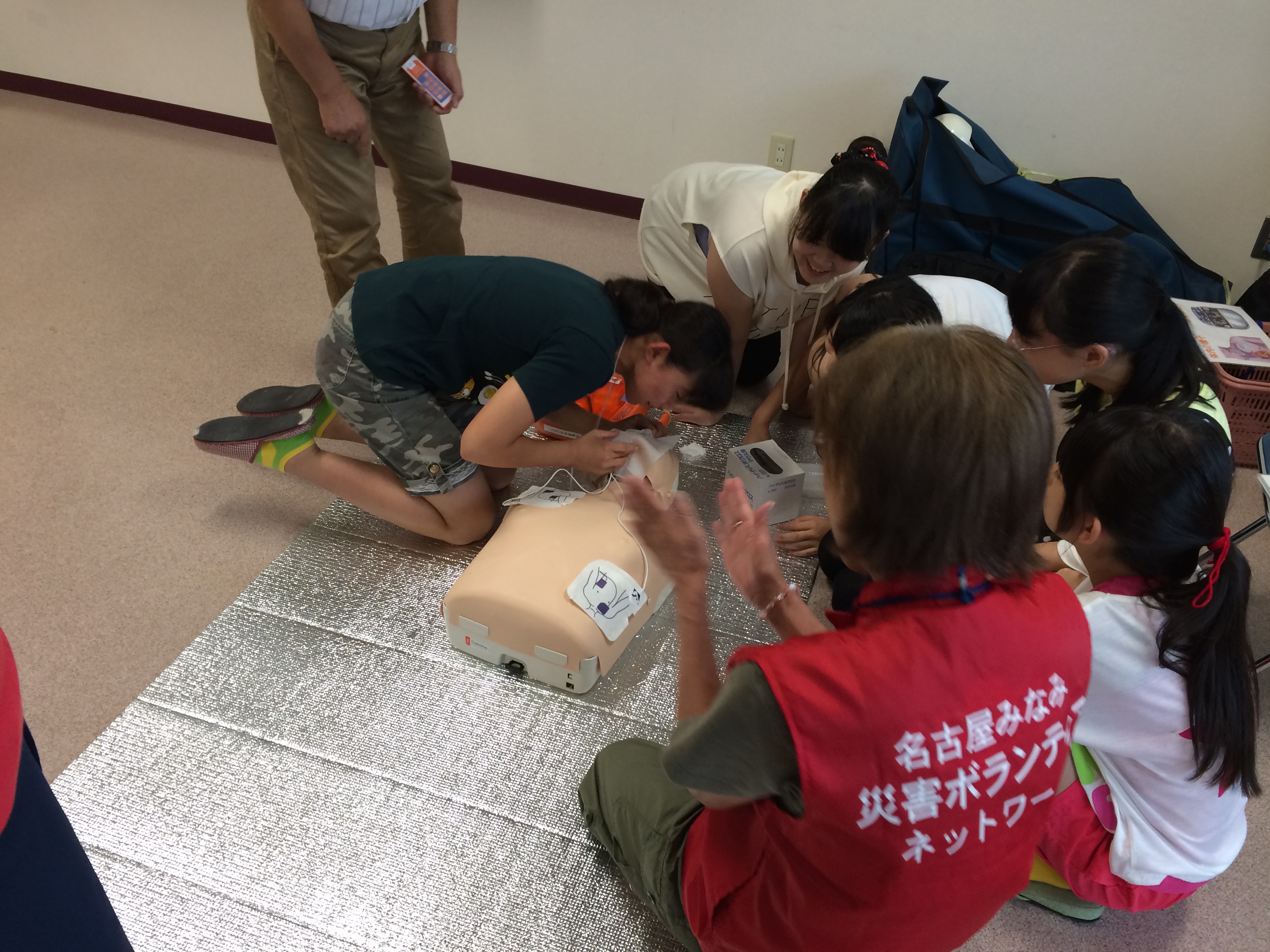 説明の後はボランティアの皆さんにもAEDを利用した救命活動を体験していただきました。
