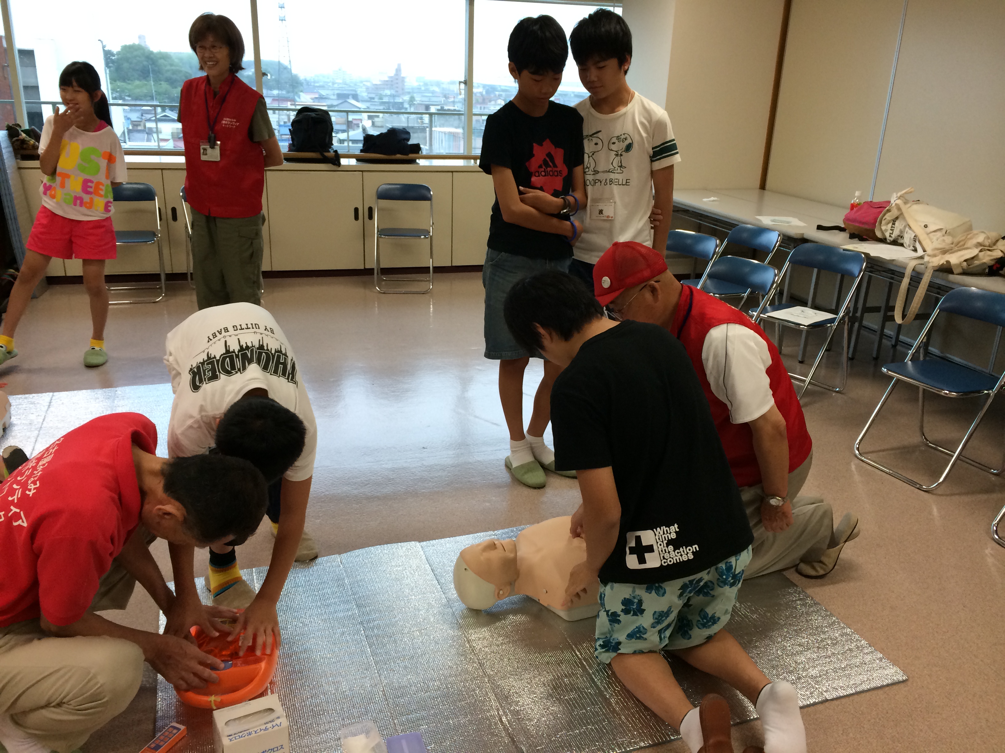 119番の通報、AEDを持ってきてもらう、胸骨圧迫をする、傷病者の方に声かけをするなど、救命措置を行う際には多くの行動が必要となってきます。