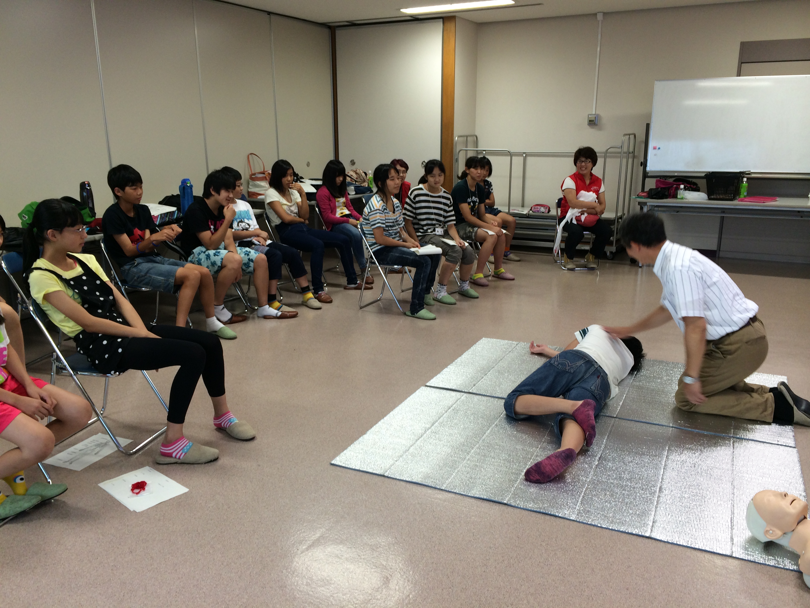 回復体位への体勢の変え方も講習しました。