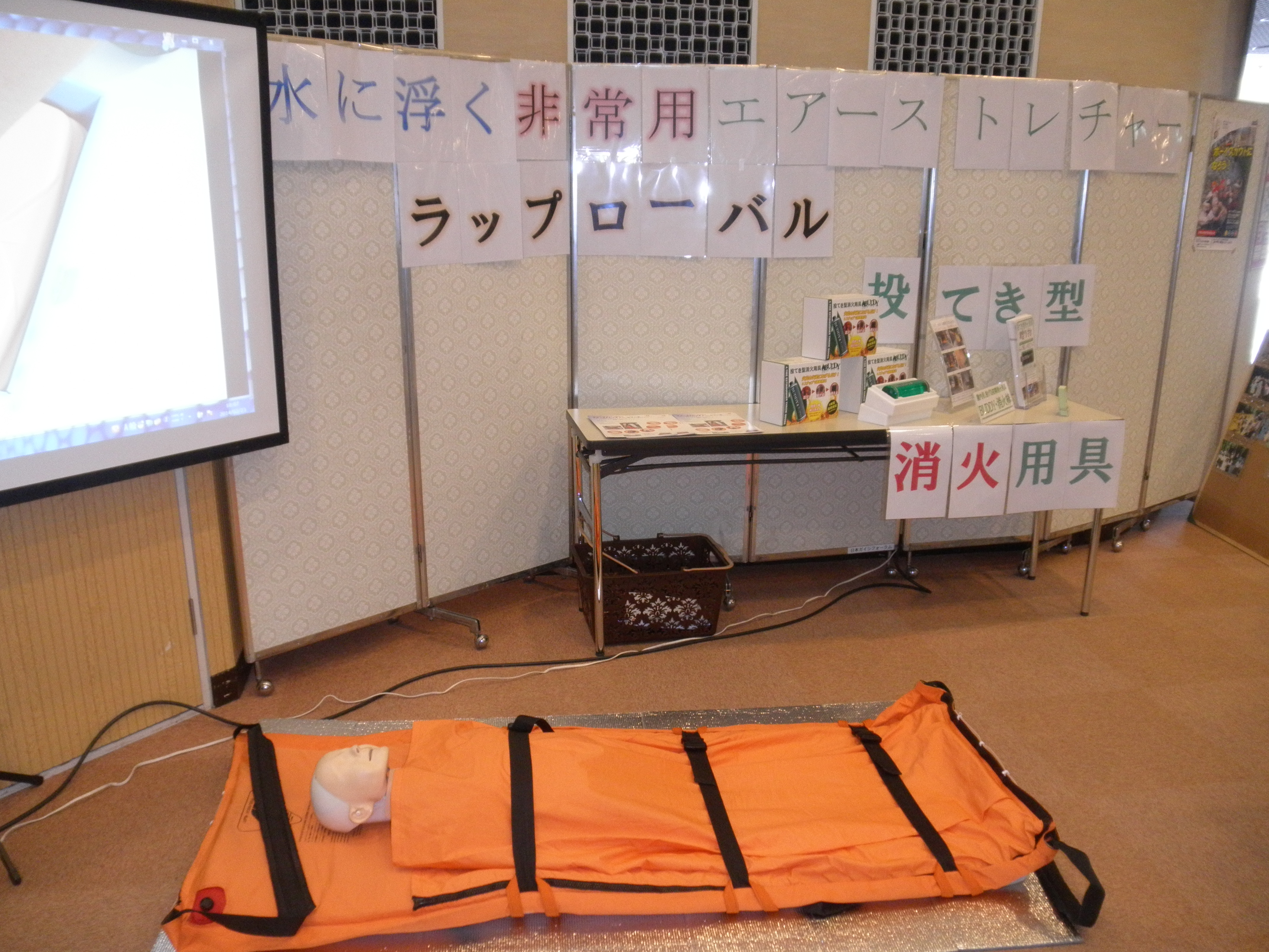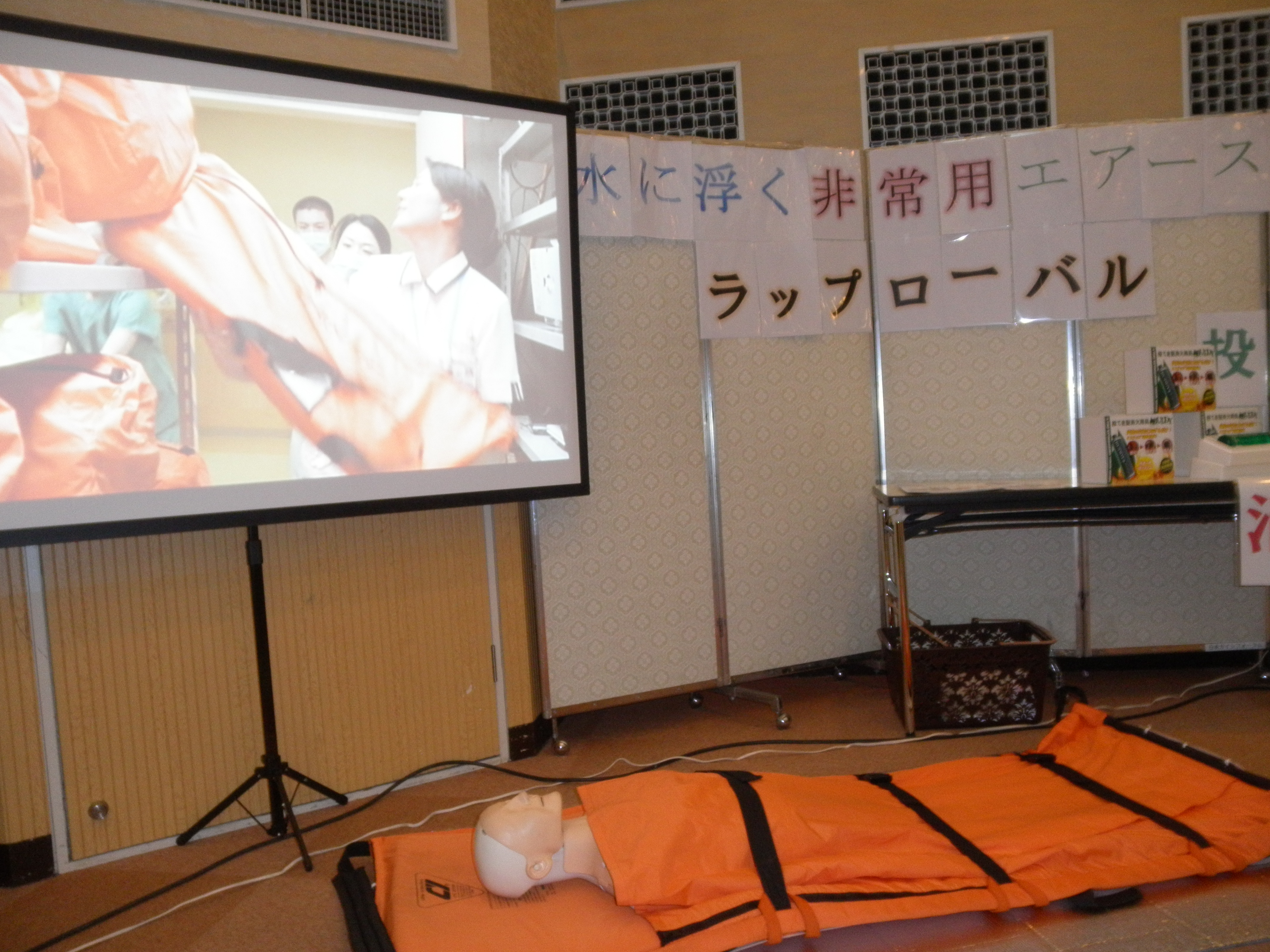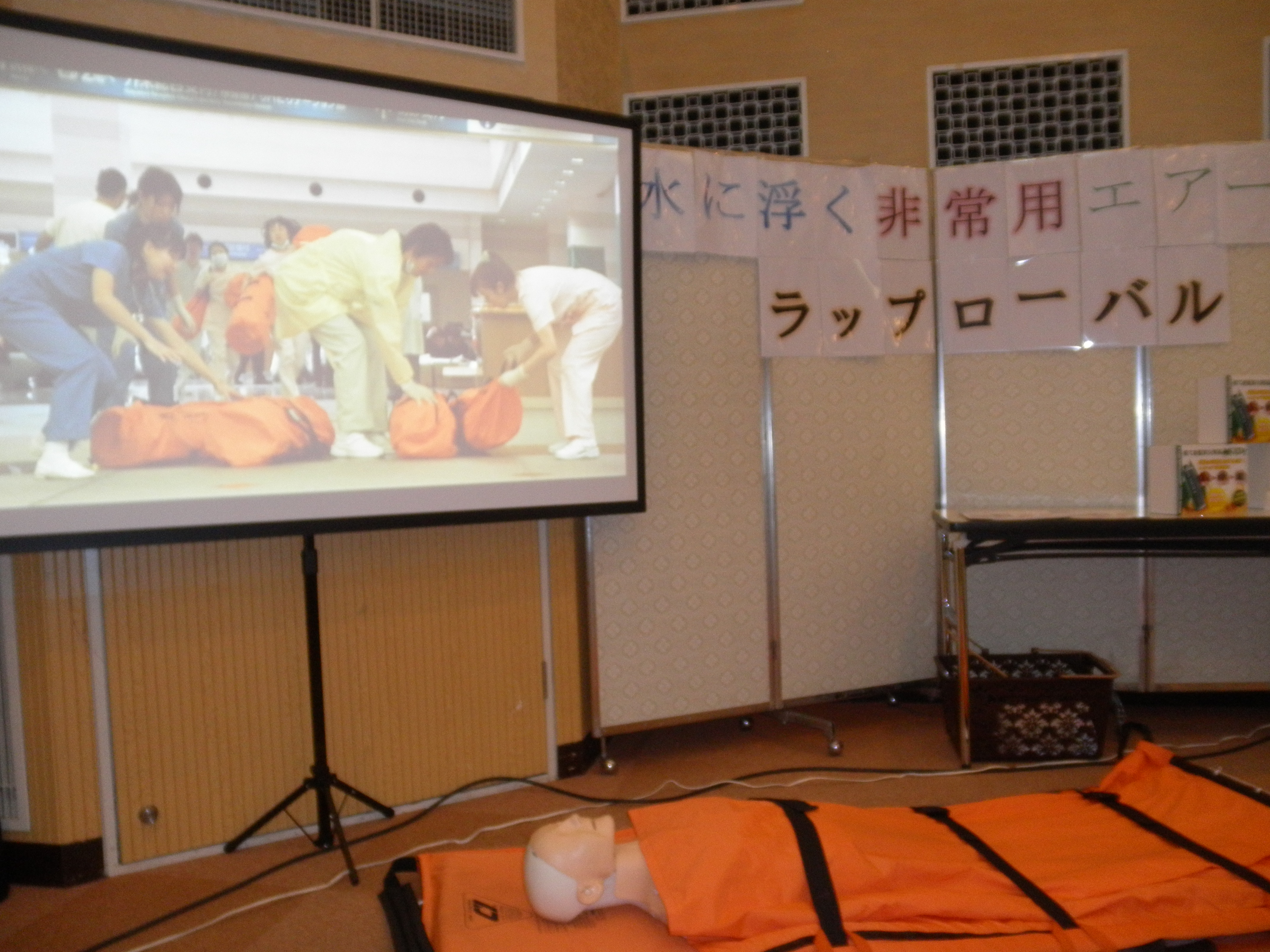 こちらは水に浮くエアーストレチャー「ラップローバル」の展示です。