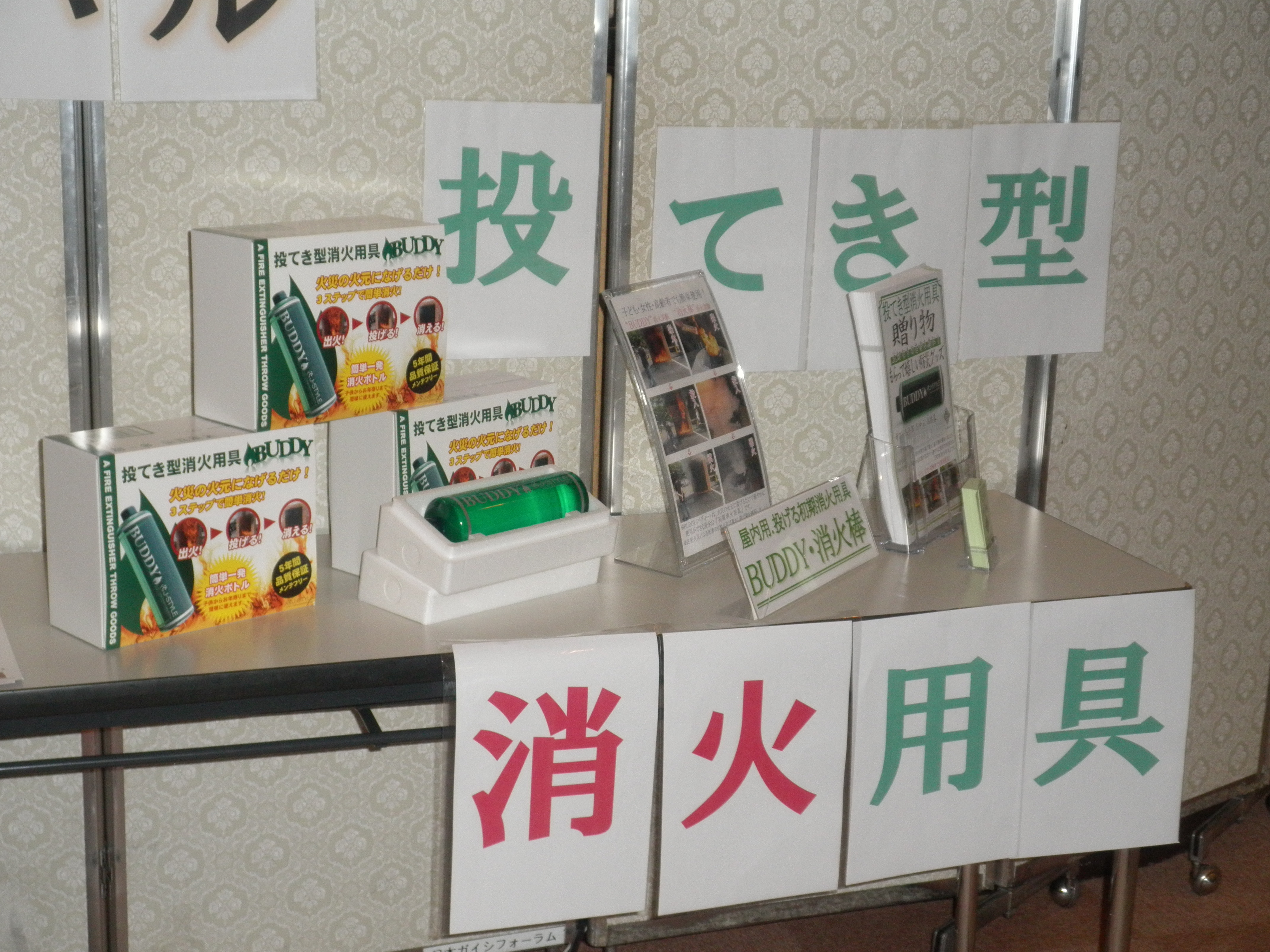 こちらは投てき型消火器「BUDDY」の展示です。